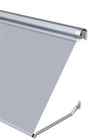 Die Fallarm-Markise Typ 340 mit ihrer formschönen Halbrundblende mit Wetterschenkel aus pulverbeschichtetem Aluminium oder Acrylglas bietet sicheren Schutz für das Markisentuch.