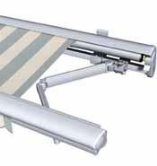 750er-Markisen können wahlweise auch mit im Fallprofil integrierten eindrehbarem Volant (nicht für Typ 750 LB) oder mit Volant-Rollo ausgestattet sein. Auf Wunsch ist das Volant-Rollo auch mit Motorbedienung verfügbar.